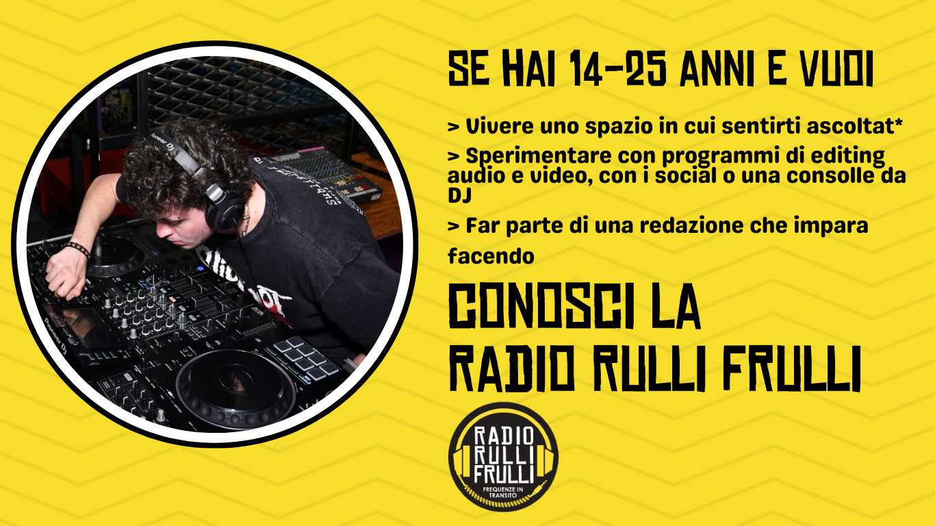 Sintonizzate le frequenze sulla radio web nata dai ragazzi e ragazze della Banda Rulli Frulli! In un momento delicato iniziato a marzo 2020, segnato da una pandemia e da nuove regole che ci chiedevano di mantenerci distanti per una sicurezza collettiva, abbiamo pensato di creare un nuovo progetto. Qualcosa che potesse far arrivare la nostra voce dappertutto, dove ci potesse essere un confronto di idee e opinioni come è nei nostri obiettivi di collettività della Banda (vedi qui).